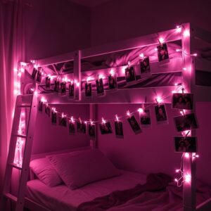 Wrap pink string lights around the bunk bed frame or along the wall nearby.