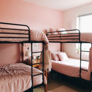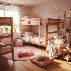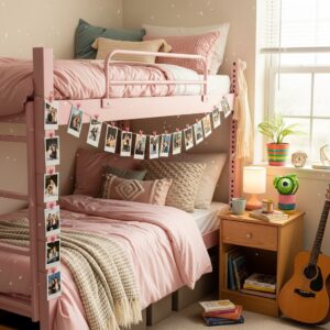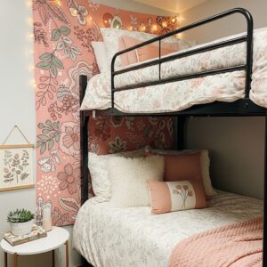 If allowed in your dorm, paint one wall pink or use removable pink wallpaper behind the bunk bed.