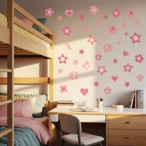 3. Pink Wall Decals Near the Bed