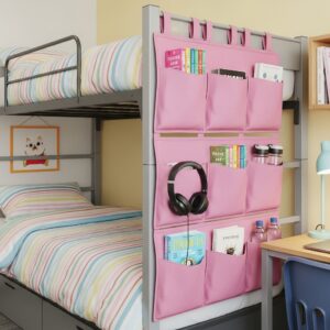 Use hanging fabric pockets on the side of the bunk bed to store items like books, headphones, or water bottles.