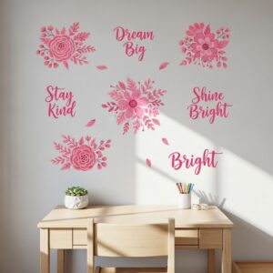 Choose pink decals in shapes like flowers, stars, or inspirational words.