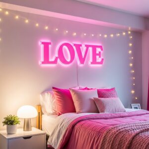 You can spell out your name, favorite quote, or a fun word like “Dream” or “Love” in pink letters.