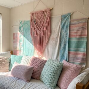 Fabric wall hangings, like macramé or embroidered panels, can give texture and depth to your walls.