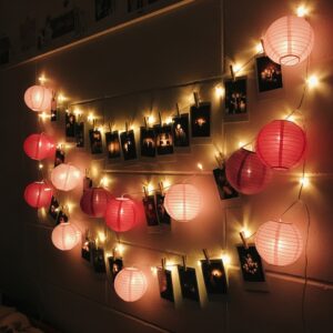 Wrap them around your wall or your bed frame, and attach small pink paper lanterns or clips to hang pictures and mini posters.