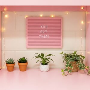 You can buy a small pink letter board or make one yourself. Write positive or funny messages that make you smile every day.