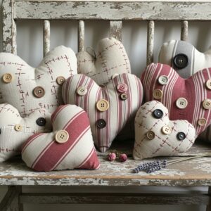 You can add simple details like hand-stitched Xs, buttons, or stamped words such as “Love” or “Be Mine.” Place them on chairs, sofas, or beds for a cozy Valentine touch.