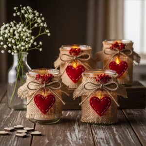 Wrap the jar with burlap, lace, or twine, and tie a small wooden heart or fabric tag around the neck.