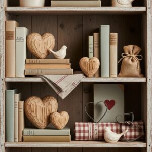 Shelf styling is an easy way to decorate for Valentine’s Day without changing your entire home.