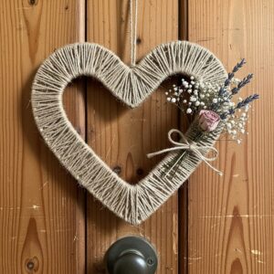 Shape a wire hanger or floral wire into a heart, then wrap it tightly with natural twine or jute.