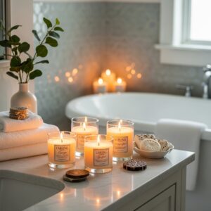 Arrange a few candles on the vanity or bathtub edge.