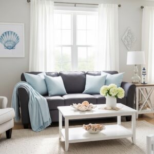 This combination feels especially relaxing and works well in coastal-inspired living rooms.