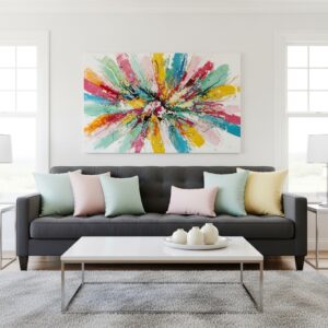 Choose bright spring artwork featuring florals, landscapes, or abstract pastel designs.