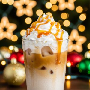 A cold version of the caramel brulee latte, perfect for warm holiday afternoons.