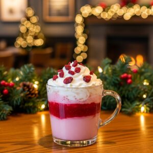 Inspired by Starbucks’ Cranberry Bliss Bar, this latte combines cranberry, white chocolate, and a hint of citrus.