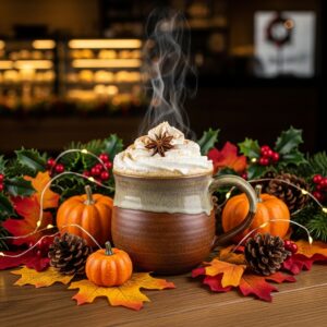 A comforting espresso drink with warm holiday spices, made with velvety microfoam milk.