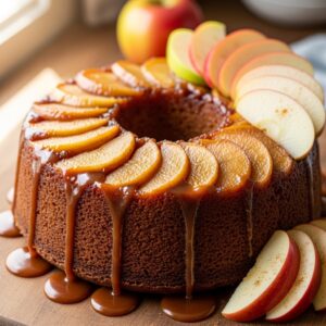 A sticky, caramel-coated apple cake that melts in your mouth.