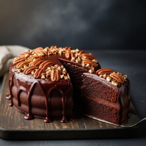 A rich chocolate cake loaded with crunchy pecans — indulgent and perfect for Thanksgiving night.