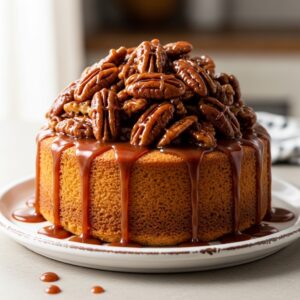 Rich, nutty, and buttery — this cake combines the sweetness of pralines with a soft vanilla base.