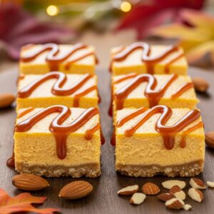Creamy cheesecake with pumpkin flavor and a nutty almond base.