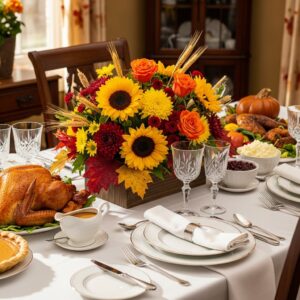 A Thanksgiving flower arrangement brings life and color to your table, tying together the spirit of the season.