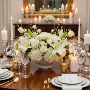 3. Elegant White and Gold Table Arrangement