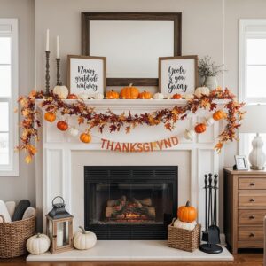 Add decorative pumpkins, framed gratitude quotes, or a string of twinkling lights for a charming Thanksgiving display.