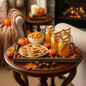 Create a small snack station or side table with Thanksgiving-themed treats.