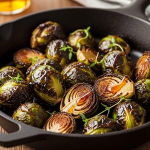 A sweet and tangy stovetop dish with caramelized Brussels sprouts.