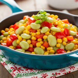A Southern-inspired stovetop mix of corn, lima beans, and peppers.