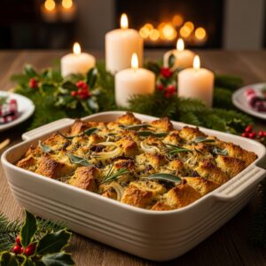 Baked until golden and flavorful, it adds warmth and texture to the Christmas meal.