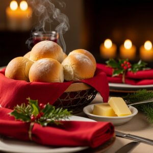 Soft dinner rolls served warm with butter are a staple of traditional Christmas dinners.