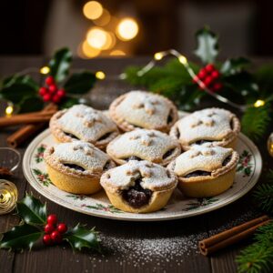 Mince pies are a beloved Christmas treat filled with spiced fruit mixture.