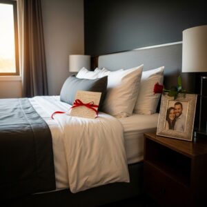 Leave a handwritten note on the pillow, a framed photo of you both on the nightstand, or a favorite love quote subtly displayed.