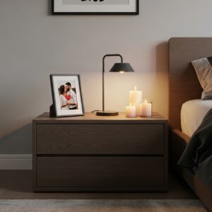 A small lamp, a couple of candles, or a framed photo creates intimacy without clutter.