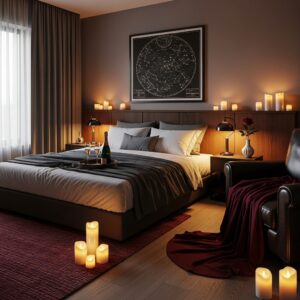 Creating a Valentine’s bedroom décor for him is all about balance—masculine elegance meets cozy romance.