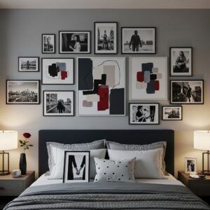 Think black-and-white photos, abstract art, or framed memories of the two of you.