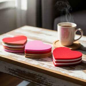 Use corkboard, clay, or felt to make DIY heart coasters.