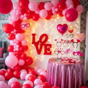 Use red, pink, and white balloons to create clusters or a balloon arch.