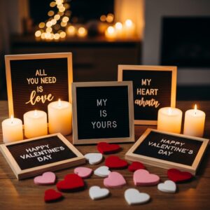 Place small chalkboards or letter boards around the party area with sweet love messages, quotes, or funny Valentine puns.