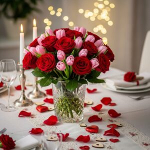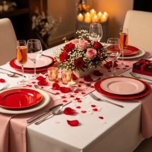 Colors like pink, red, or white enhance the Valentine’s theme and give a luxurious, romantic feel.