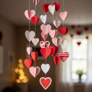 Create a whimsical effect with hanging heart mobiles made from paper, felt, or lightweight materials.
