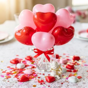 Heart-shaped balloons in pink, red, or gold are perfect for adding a playful, whimsical element to your table.