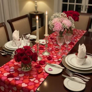 A table runner in Valentine’s colors or with romantic patterns instantly elevates your table decor. Choose runners with hearts, lace, or floral prints.