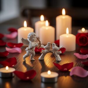 Small figurines or statues such as cupids, lovebirds, or heart motifs add personality to your table.