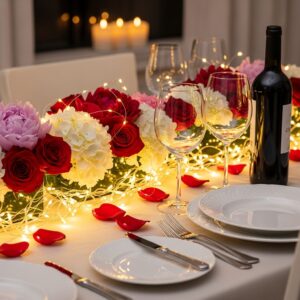 The soft twinkle adds a cozy and dreamy vibe, ideal for intimate Valentine’s dinners.