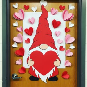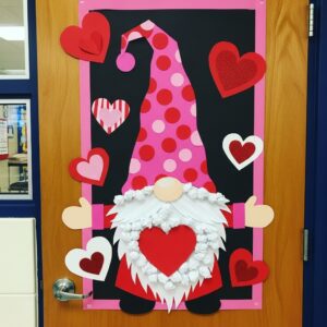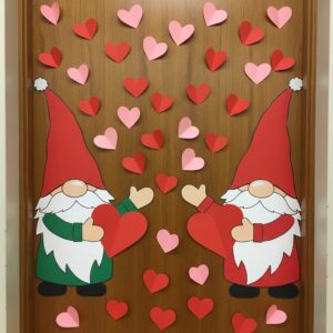 Here are 14 detailed ideas to inspire your classroom door decorations with Valentine gnomes.