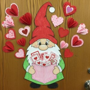 Gnomes bring a magical touch to any decor, and incorporating hearts, messages, and interactive elements ensures that students feel included and excited about Valentine’s Day.