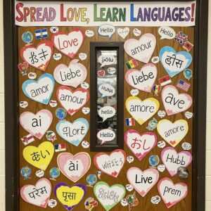 Celebrate diversity by decorating the door with hearts representing different cultures, languages, or traditions.