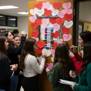 Attach blank heart cutouts with pens nearby so students can write positive notes or compliments.