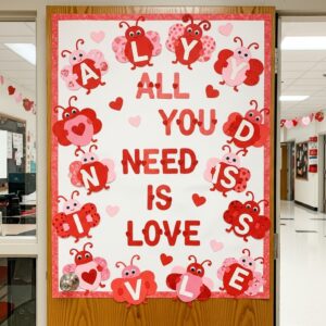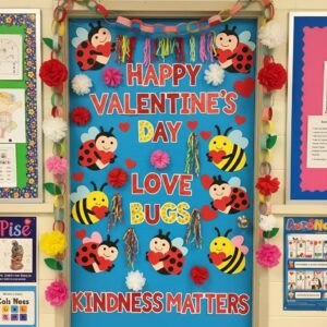 Valentine’s Day is the perfect opportunity to bring color, creativity, and kindness into the classroom, and love bug–themed door decorations are both fun and age-appropriate for students.